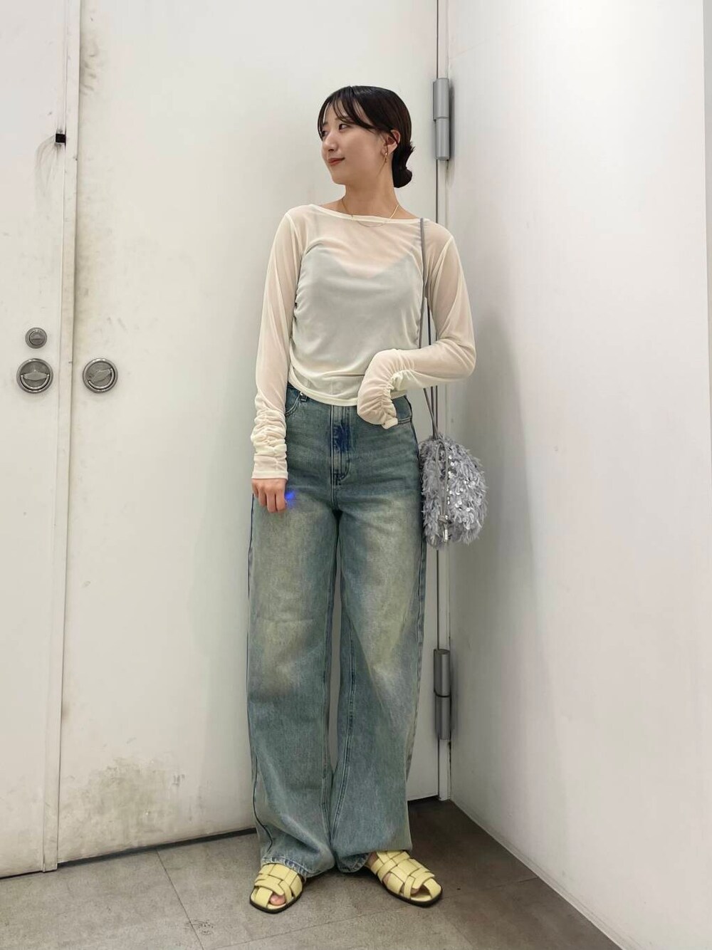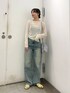 私のリアル出勤コーデです🍑 デニムはぺったんこと合わせてずるっと 履くのがおすすめです◯ トップスもちょうどいい丈感なので インしなくても可愛いです⭐️ 2つ合わさると抜け感あるオシャレコーデ完成です!