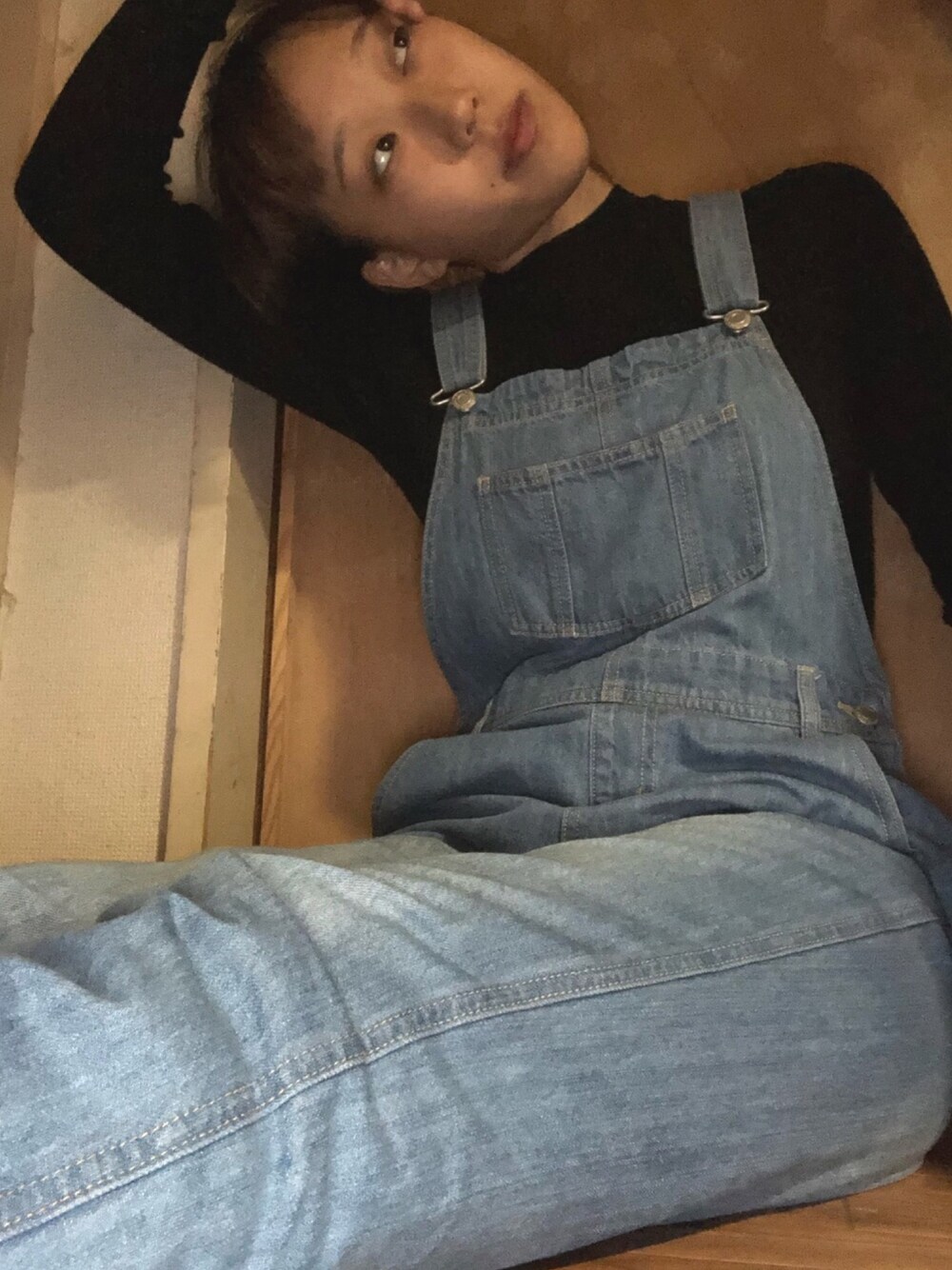 芋のサロペット/オーバーオール「デニムオーバーオール」を使ったコーディネート