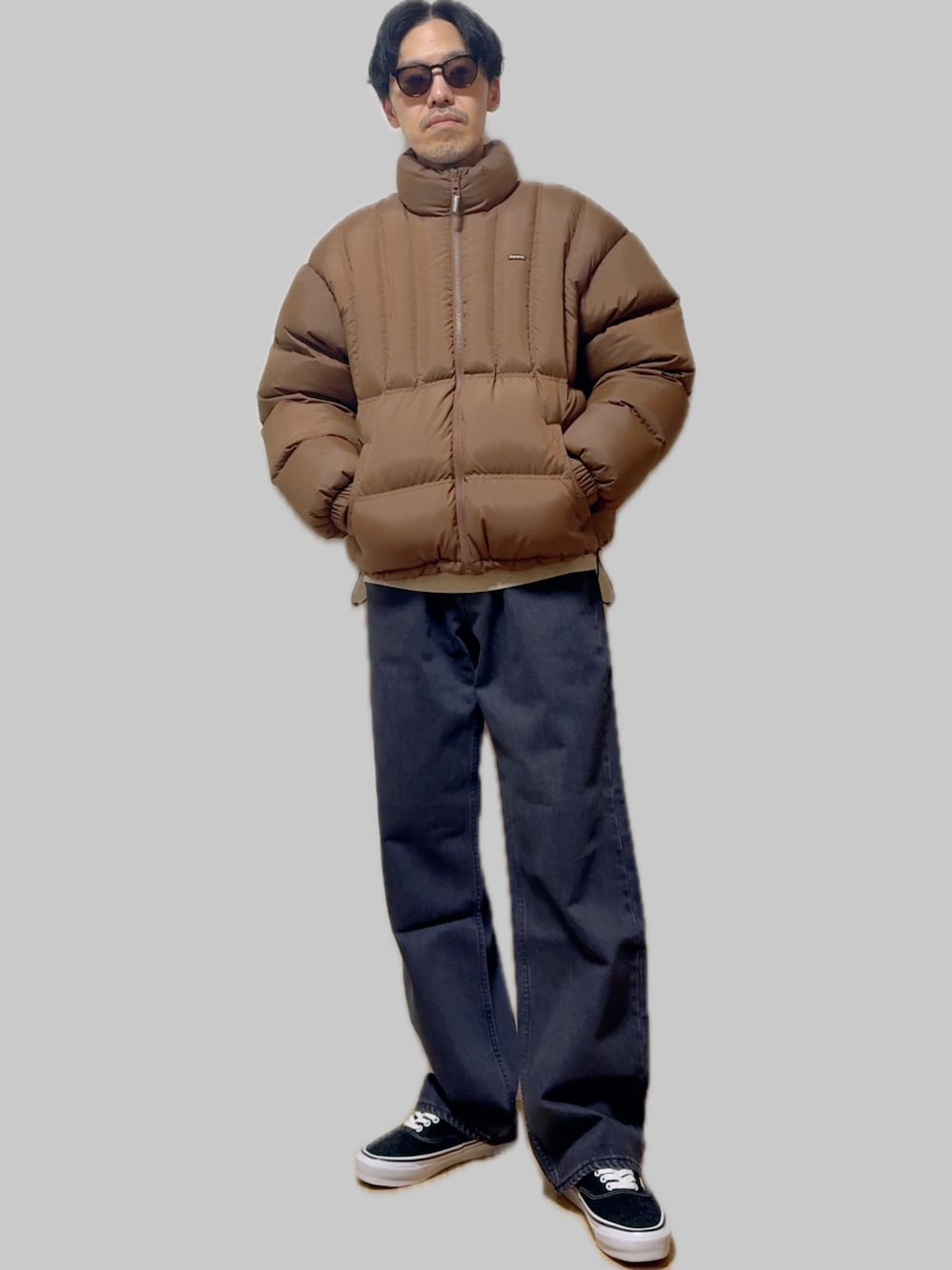 Supreme の Puffer Reversible Jacket を主役にした冬スタイル。 ボリュームのあるアウターに、Unuqlo × JW Anderson のストレートデニムのブラックが調子良かったので合わせてシルエットをシンプルにまとめました。 足元は Vansで程よくカジュアルダウンしつつ、 全体のバランスを取りやすい組み合わせです。 ストリート感がありながら、大人でも着やすい落ち着いたスタイリングを意識しました。