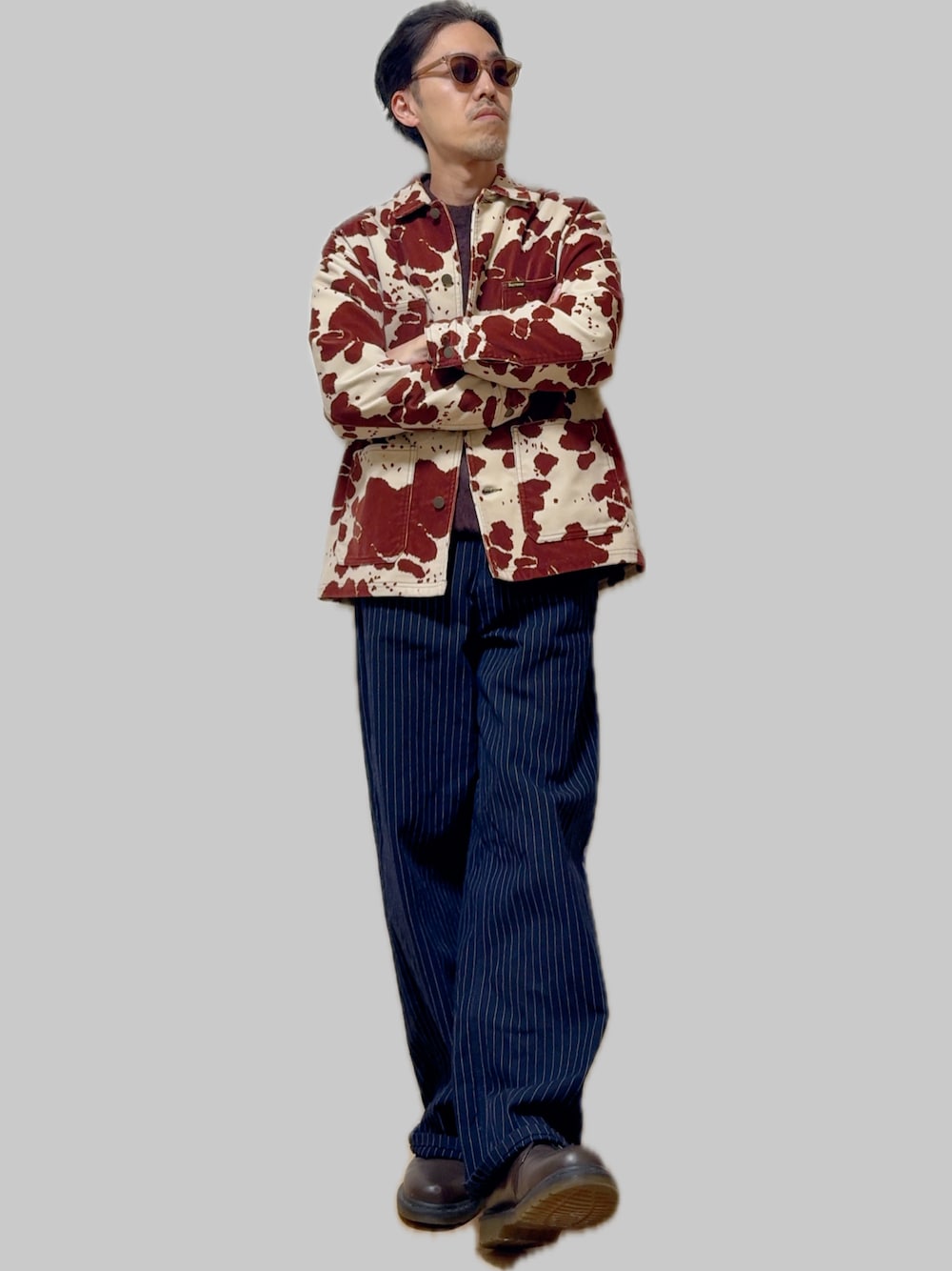 チョアコートだけだと寒いのでインナーは厚手のアルパカニット。 ストライプパンツで上品さをプラス。