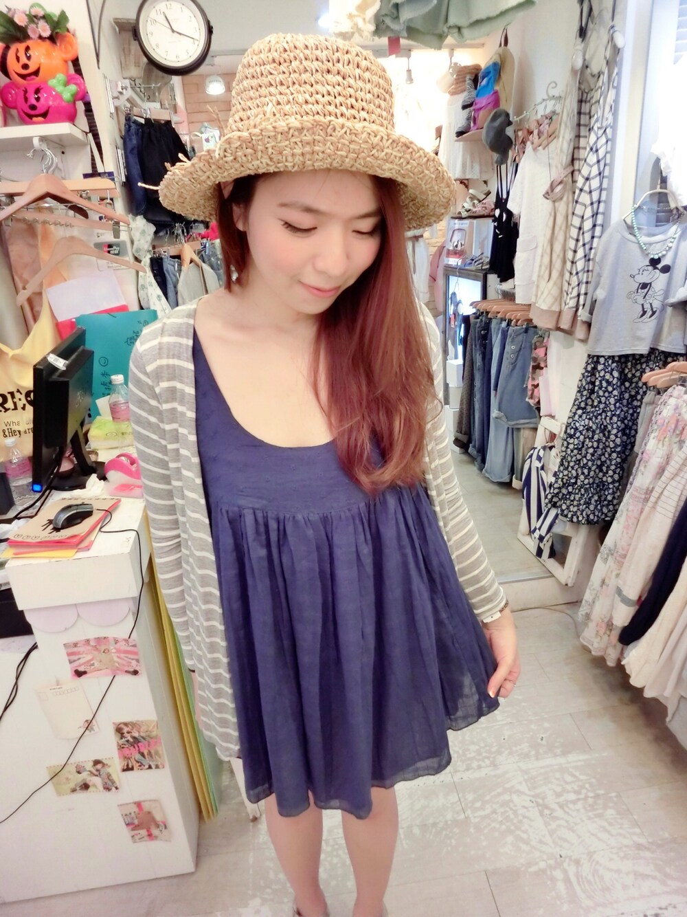 麻料背心✖️條紋外套✖️草帽👒= SUMMER