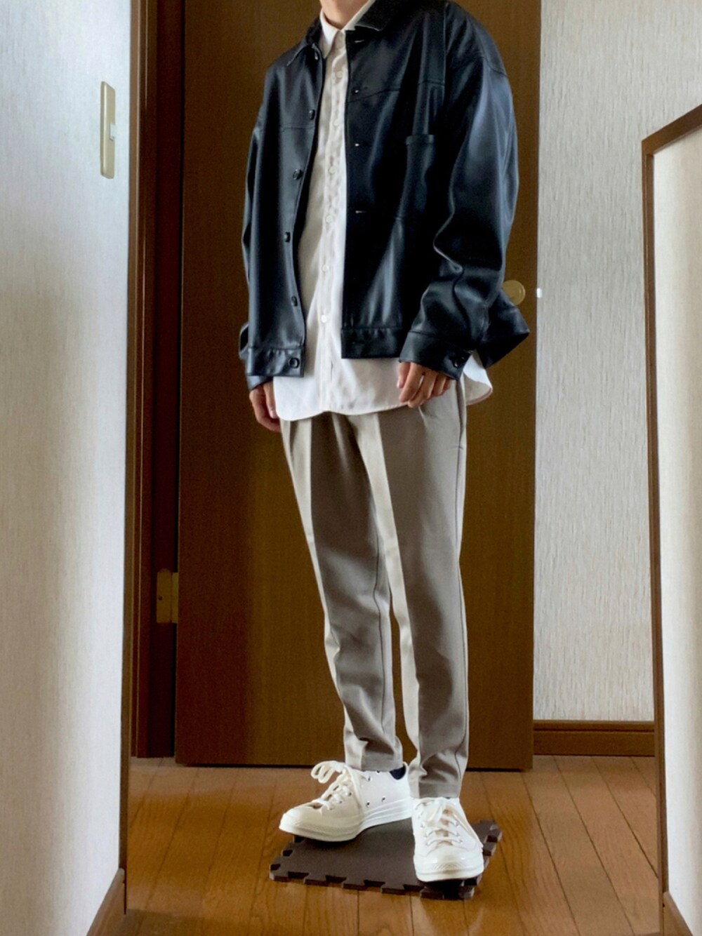 春に続き秋冬もレザーを 最近このパンツとスニーカーの組み合わせが好きでよくやってます どれも使い回しのいいアイテムです😊