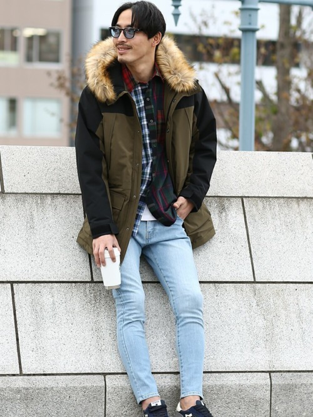 improves_official(improves)のダウンジャケット/コート「ファー付き 撥水ストレッチ 中綿 ダウンタッチ マウンテンパーカー」を使ったコーディネート