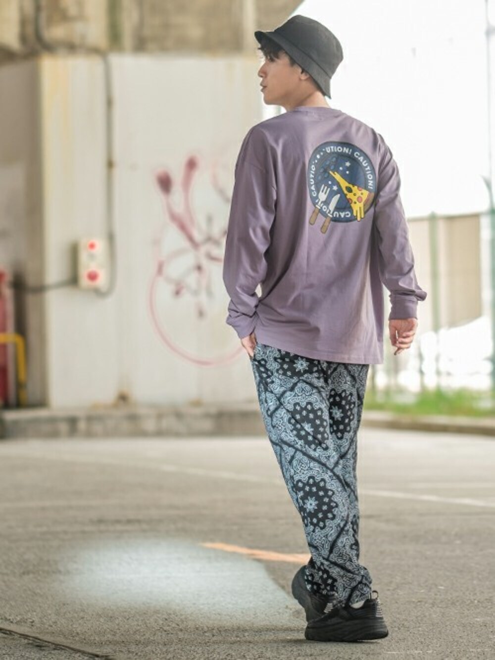 improves_official(improves)のTシャツ/カットソー「オリジナル グラフィック USコットン UFO ピザ プリント 長袖Tシャツ ロンT」を使ったコーディネート