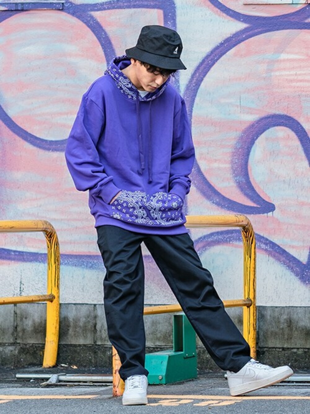 improves_official(improves)のパーカー「バンダナ ペイズリー柄 切替 裏毛スウェット プルパーカー」を使ったコーディネート