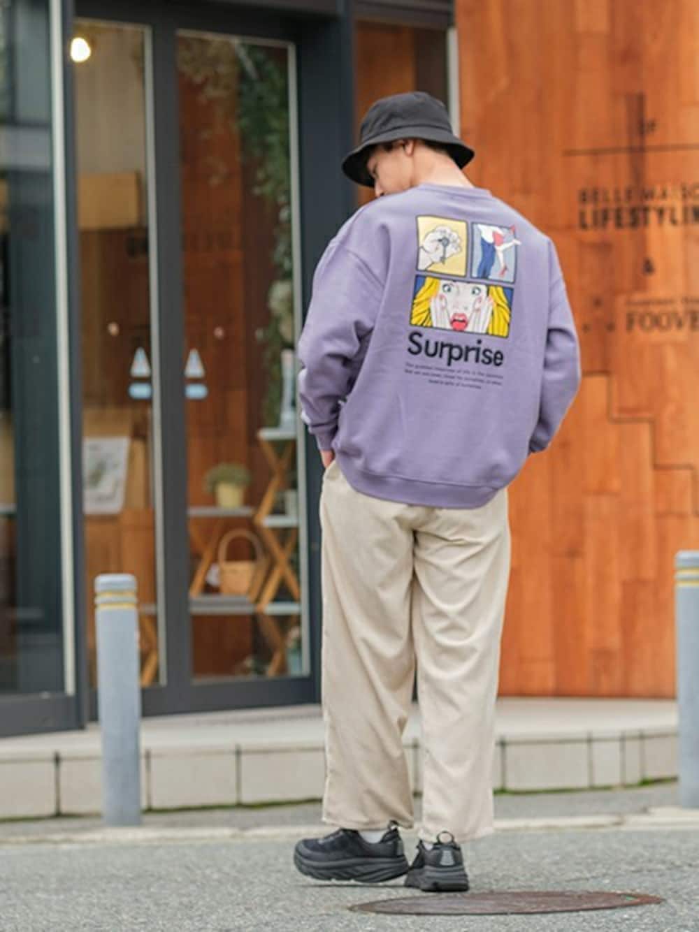 improves_official(improves)のスウェット「オリジナル グラフィック アメコミ プリント 裏起毛 スウェット トレーナー 韓国」を使ったコーディネート
