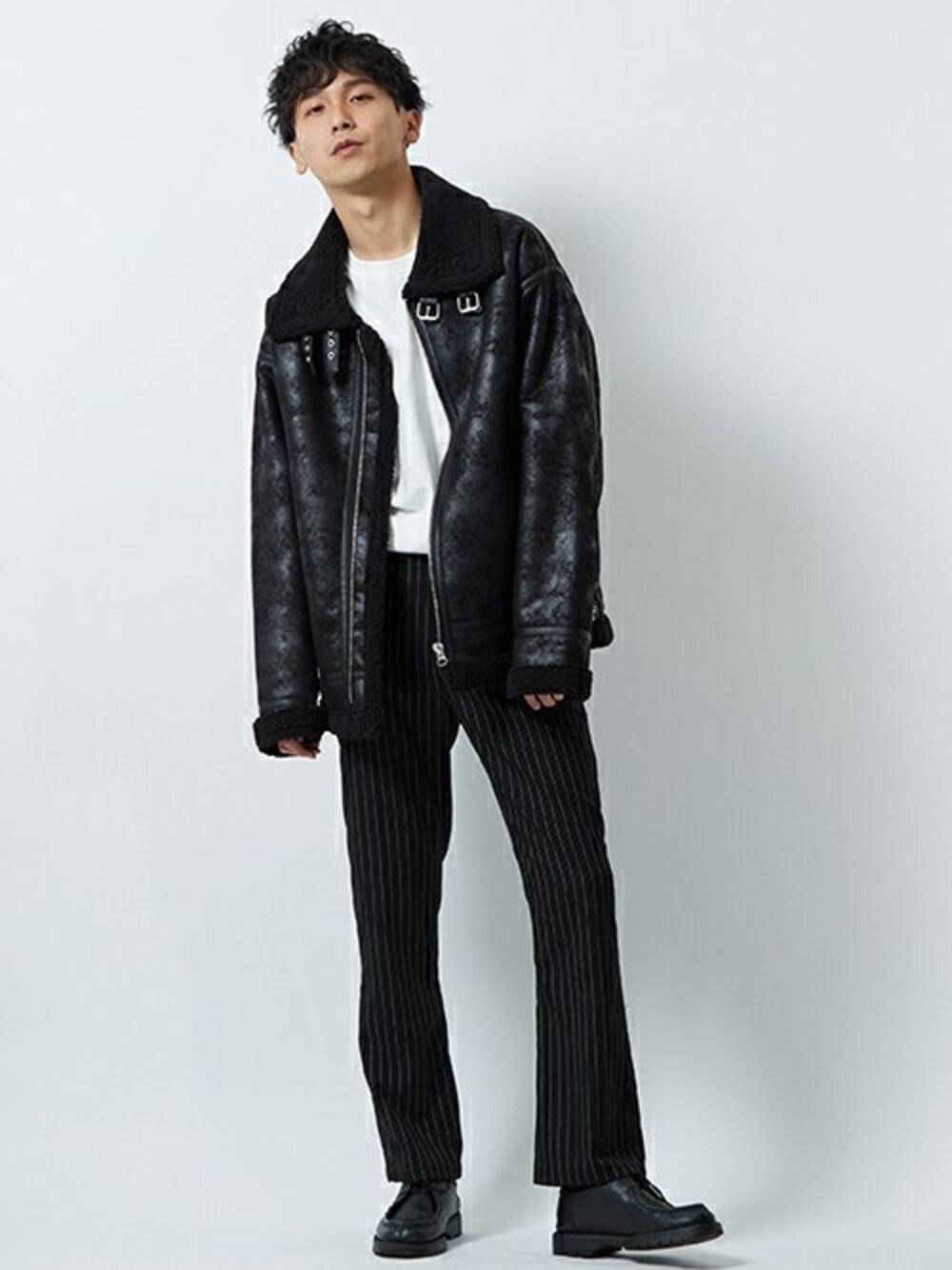 improves_official(improves)のブルゾン「フェイクムートン B-3 フライト 裏ボア ミリタリー レザー ブルゾン」を使ったコーディネート