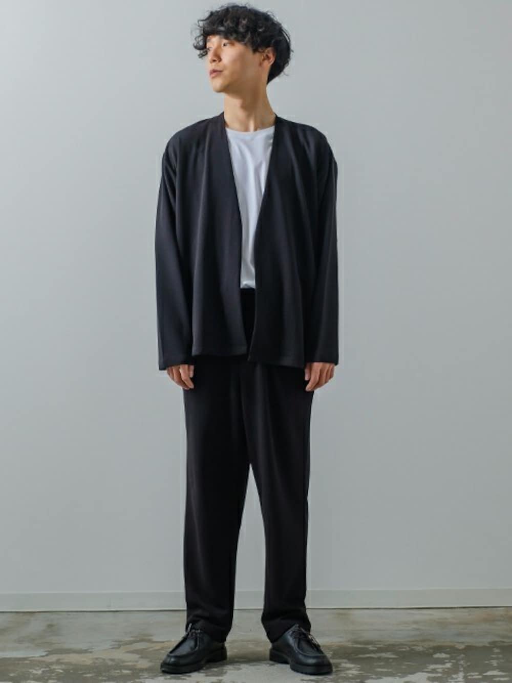 improves_official(improves)のノーカラージャケット「カットジョーゼット ノーカラー カーディガン ジャケット セットアップ対応」を使ったコーディネート