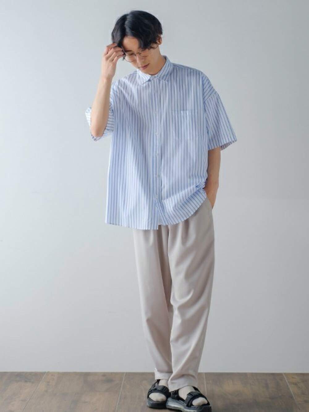 improves_official(improves)のシャツ/ブラウス「ブロード オーバーサイズ レギュラーカラー 半袖 ストライプシャツ」を使ったコーディネート
