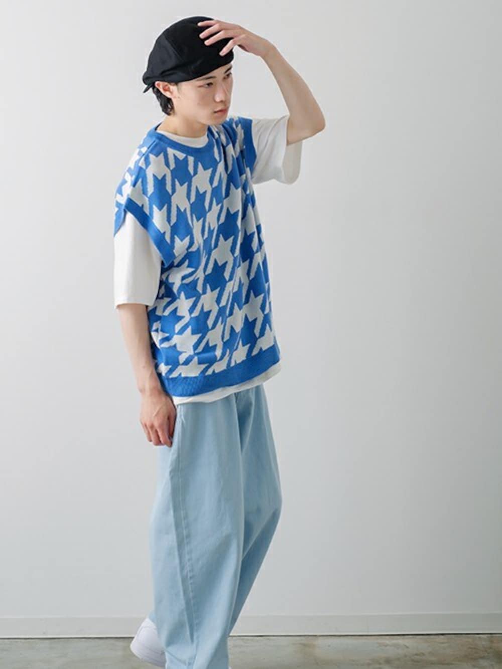improves_official(improves)のベスト「【improves】千鳥格子柄 ワイドシルエット ニットベスト」を使ったコーディネート