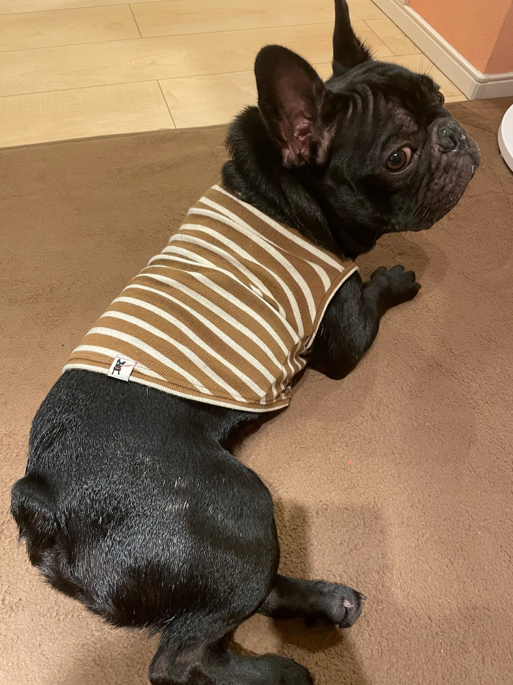 ブラウン系のペットウェアを着用したキッズの秋コーディネートの1枚目の写真