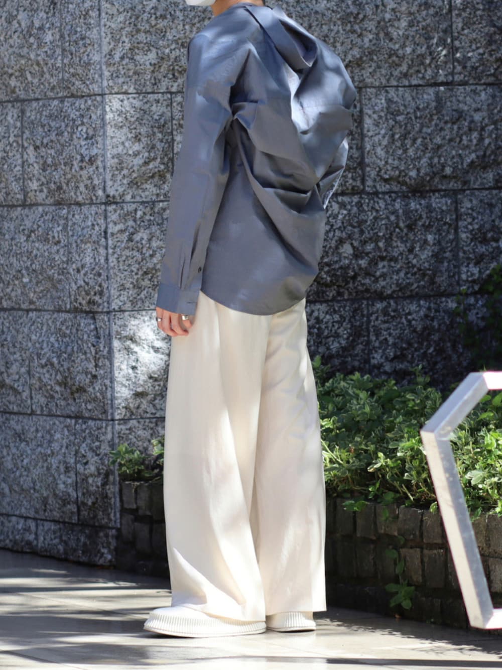 このシャツ、第二ボタンの下から首通して着てます。 前面は和っぽい雰囲気でてギミック ある着方なので色味はできる限り優しく見せてます #フロントアウト