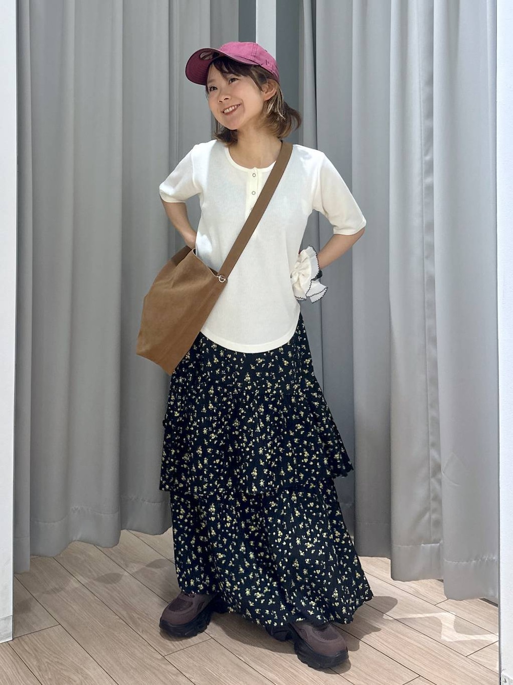 古着っぽレトロガールコーデ❤️🌻 🎀使用アイテムのおすすめポイント  ̄ ̄ ̄ ̄ ̄ ̄ ̄ ̄ ̄ ̄ ̄ ̄ ̄ ̄ ̄ ̄ ̄ 【ワッフルヘンリートップス】 ヘンリーネックが首元にアクセントをつけてくれるので、適度な抜け感がでますよ〜✨ ちなみに、!♡ ヘンリーネックとは、丸首×ボタンで上品なイメージに見えるらしいですよ〜✨^_^ 【アシメティアードスカート】 アシンメトリーなティアードデザインがお洒落見えするので、オススメ🌟 まさかのポケット付きでありがたい🙏 【バッグ】 スウェード生地をチョイス🤎 一部だけ秋物アイテムを取り入れると、カッコよく決まります!! ⭐︎____________________________________ コーディネートが参考になったら嬉しいです♪ お気に入り♡や、こちら↓からカートに入れていただけるともっと嬉しいです😉😉❣️ では、 『服も、心も、カラフルに生きていく。』をモットーに、 遊びゴコロたっぷりの毎日を発信しています🌈♡ 毎日に"色"を添えるコーディネートが気になった方は、フォローお待ちしております🎀💖