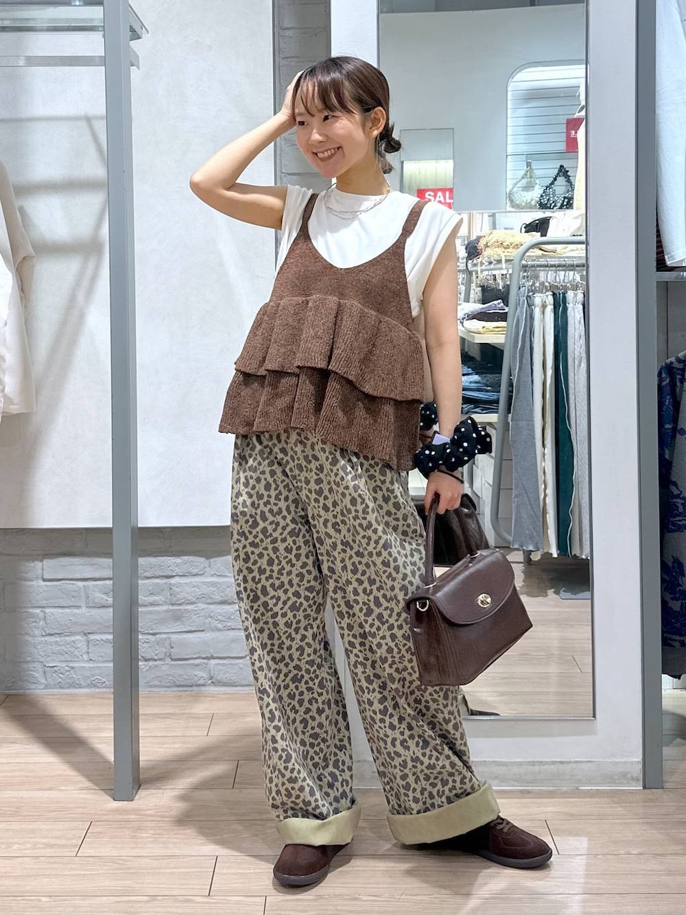セールアイテムでもオシャレなコーデ🉐 🎀使用アイテムのおすすめポイント  ̄ ̄ ̄ ̄ ̄ ̄ ̄ ̄ ̄ ̄ ̄ ̄ ̄ ̄ ̄ ̄ ̄ 【モールペプラムベスト】 店頭でも大人気なプットオンアイテム✨ 寒くなったらシャツの上に合わせたい◎ ひとつ持っておくと、様々なレイヤードスタイルが楽しめますよ〜!!🤎 【タックワイドデニム】 身長154cmの私で、ロールアップするといい感じの丈感でした◎ 今年トレンドのアニマル柄を取り入れるとオシャレ見えしますよ😎✨ 【カラースニーカー】 気になるブラウンカラーのスニーカー👟 なんとスウェード調なので、他にはない質感なんです!! 足元から秋を取り入れてみませんか??🍂 ⭐︎____________________________________ コーディネートが参考になったら嬉しいです♪ お気に入り♡や、こちら↓からカートに入れていただけるともっと嬉しいです😉😉❣️ では、 『服も、心も、カラフルに生きていく。』をモットーに、 遊びゴコロたっぷりの毎日を発信しています🌈♡ 毎日に"色"を添えるコーディネートが気になった方は、フォローお待ちしております🎀💖