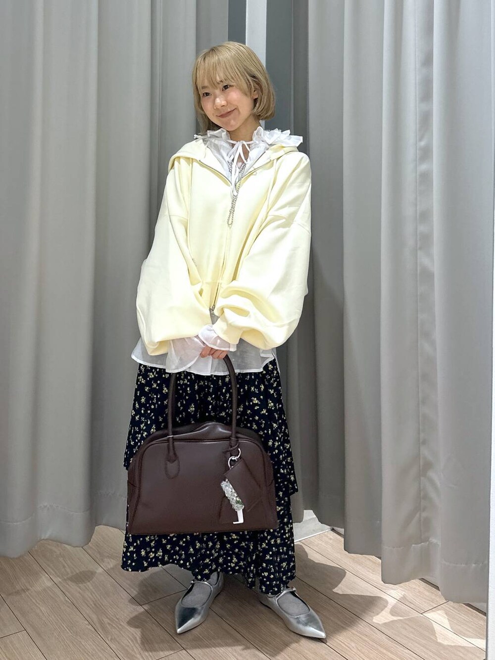 心彩るカラーコーデ💛 🎀使用アイテムのおすすめポイント  ̄ ̄ ̄ ̄ ̄ ̄ ̄ ̄ ̄ ̄ ̄ ̄ ̄ ̄ ̄ ̄ ̄ 【ZIPショートフーディ】 完売続出🌟店頭で大大大人気のフーディを、私も手に入れました🫶🏻 綿素材なので、肌触りが良いですよ! フリルフードシャツと重ねると、甘く着れるのでオススメです! 【アシメティアードスカート】 動くと空気を含んでふわっと動くので、大人カワイイ雰囲気を出したい日にオススメです✨ 小花柄は、骨格ウェーブさんが得意な柄💐コーディネートのワンポイントにもなるので、ぜひチェックしてみてください! 【ボストンバッグ】 大容量バッグなのにとても軽い!!! 他の投稿で実際に使っているシーンがあるので、合わせてご覧ください🙆 ⭐︎____________________________________ コーディネートが参考になったら嬉しいです♪ お気に入り♡や、こちら↓からカートに入れていただけるともっと嬉しいです😉😉❣️ では、 『服も、心も、カラフルに生きていく。』をモットーに、 遊びゴコロたっぷりの毎日を発信しています🌈♡ 毎日に"色"を添えるコーディネートが気になった方は、フォローお待ちしております🎀💖