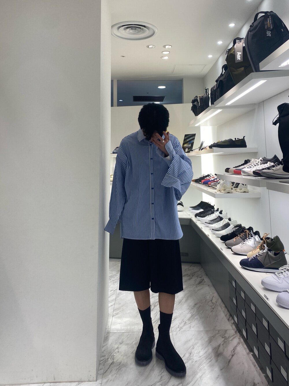 ご覧いただきありがとうございます! 最近雨が多い、、、雨の中でも革靴を履きたい、、、 こちら雨の中でも履けちゃうブーツになってます!! 勿論、ケアをしっかりしてる場合ですからね🙄 服装はシャツを2枚重ねて着てレイヤードスタイルにしました!