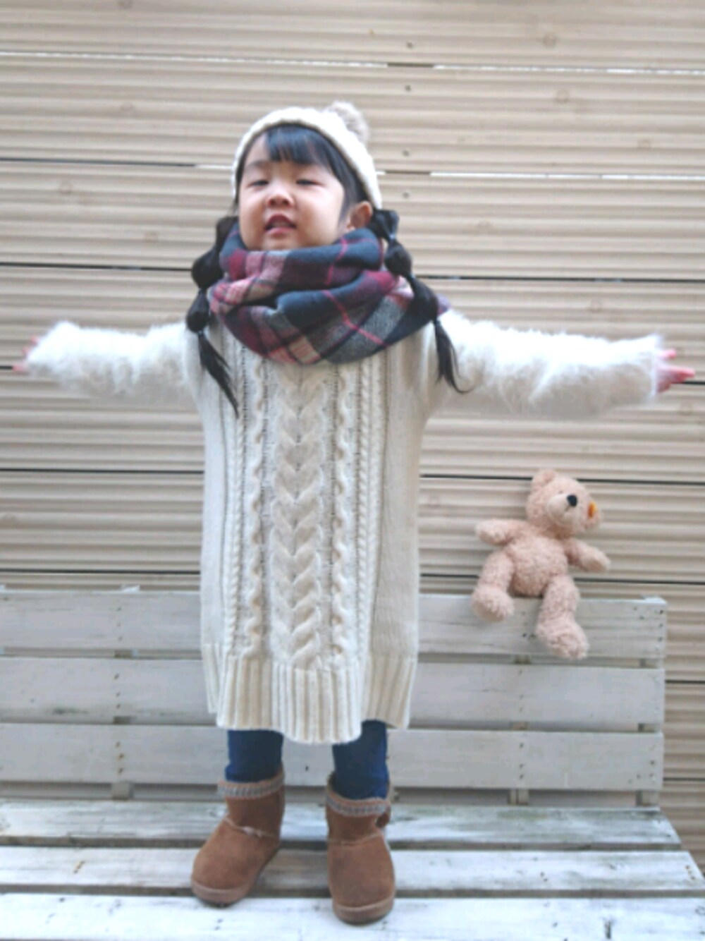 ギュッとしたくなるニットワンピコーデ♥ お正月用に年末のセールでGET✨ 100サイズだからちょっと大きめだけど好きな丈感🙆💕 お袖だけもけもけ素材なのが今年っぽいかな😊 このコーデで大好きなヒナノちゃんの200フォロワーさんお祝いリンク♥ ニット帽とスヌードはオソロだし大満足のリンク😆 ただ…… 同じポージングをしてもチョケ感が否めない娘が残念すぎる😣 ヒナノちゃんこんな娘でごめんよぉ😢 ヒナノちゃんママはお洋服の趣味も合うし手芸話でも盛り上がれる大好きなお友達♥ 200フォロワーさんおめでとー🎉 これからも仲良くしてねっ😚💕 そして……小窓には変態娘が💦💦 サンタさんにもらったネネちゃんのおめめの様子がおかしいので交換してもらいにJoshinへ! ももちゃんがオモチャに夢中なすきにこっそり交換成功🔃ホッ💨 大きなメルちゃんのスカートの中をのぞいて 「ぱんつはいてないよ😲」 あおくんのズボンをぬがして 「あ!チンチンある😍」 変態だぁぁぁー🙈💦💦笑