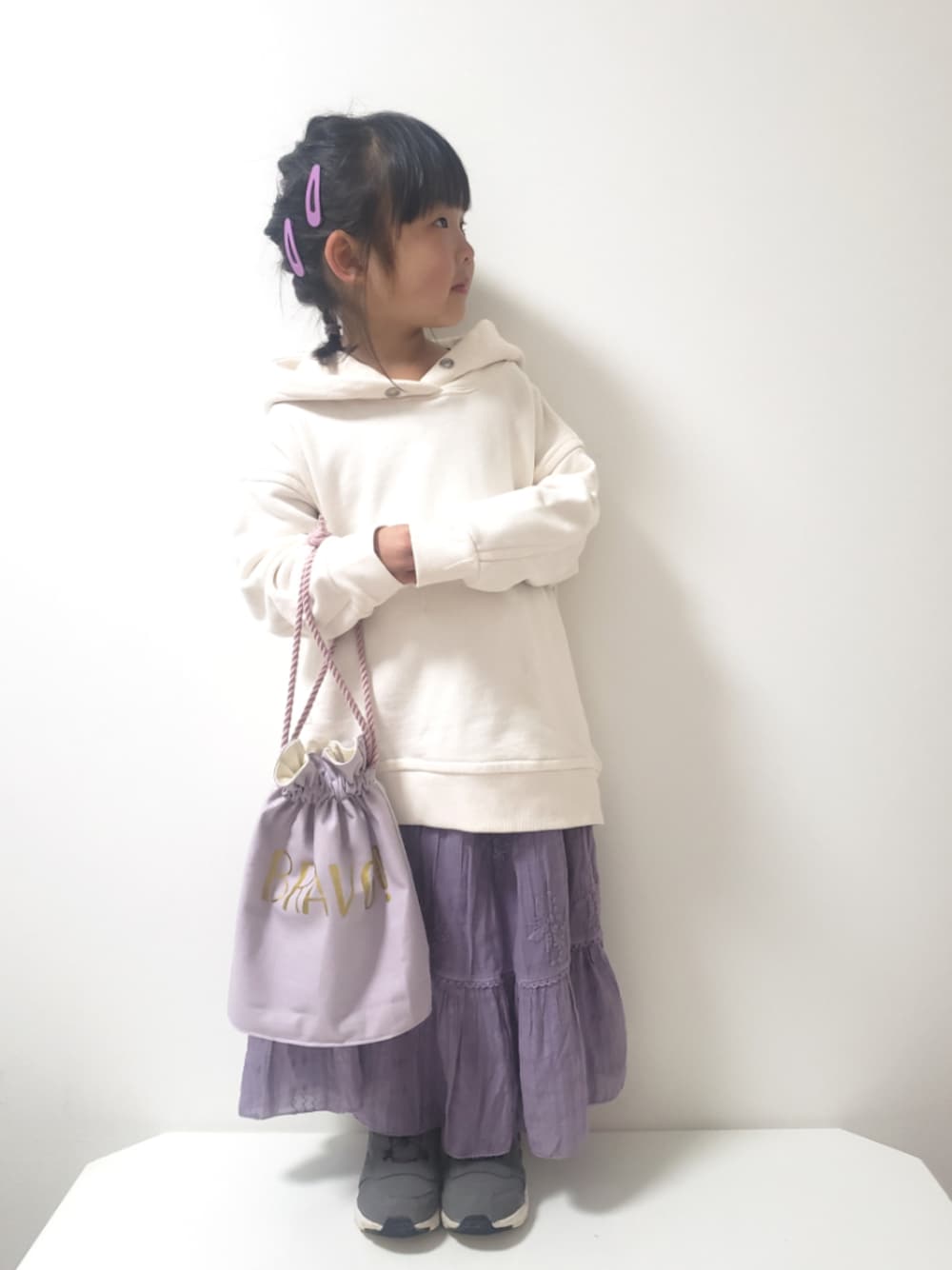 パステル映える春コーデ ② ♥️ 昨日久しぶりにリメイクしたら勢いづいて もう1着スカートをリメイクして それからさらに…… ずっと作りたかった巾着バッグを作ってしまいました😂 ちょうどパステルカラーの生地を買ってたから いい感じにパープルコーデになりました💜 ダイヤルドライブにもパープル入ってるから 合わせたのに全然見えなかったー😫(笑) CAN DOのヘアピンも💜 かわいいミントグリーンとセットで100円‼️ そりゃ~2セット買っちゃうよね~😍 小窓には土曜日に行ったスノーボードの写真をっ🏂 みんな外出を自粛してる時ですが…… 家族だけで車に乗って行って 屋外で遊んでランチもテラス席で食べたら うつす可能性もうつされるリスクも少ないかなぁ😅 と言うわけで…… 暑いくらいのピーカンの太陽の下で 雪遊びとスノーボードを楽しんできました⛄ ももちゃんは初めてのICカードに大喜びで 何回も『コドモケンデス』の真似をしてました😂