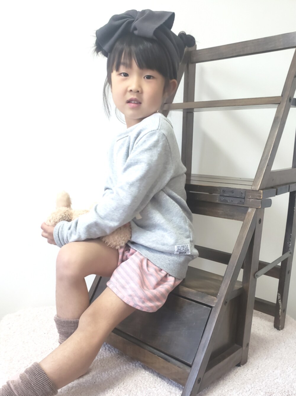 休日スタイル♥️ スウェットとボクサーショーツでステイホーム🏠 ママの家着のショーパンをリメイクして ボクサーパンツ風にしてみました✂️ 座ってるのは私が子どもの頃からある変身椅子✨ パタンって半分ひっくり返したら脚立になるのですー‼️ そんな紹介いらないか😅(笑) おうちにいる時間が増えると家族揃っておやつの消費量が半端ない💦 絶対太るわー🙈 ももちゃんのお気に入りは相変わらず知育菓子♥️ 作るだけ作って残すやつもあるから困る😰 年中さんになってからずっと頑張ってる逆立ちの練習‼️ 最初はパパかママの補助が必要だったけど…… 最近は1人で頑張って 失敗したらキレイにブリッジで着地してます😁 こども園再開までにできるようになったらいいなぁ💕