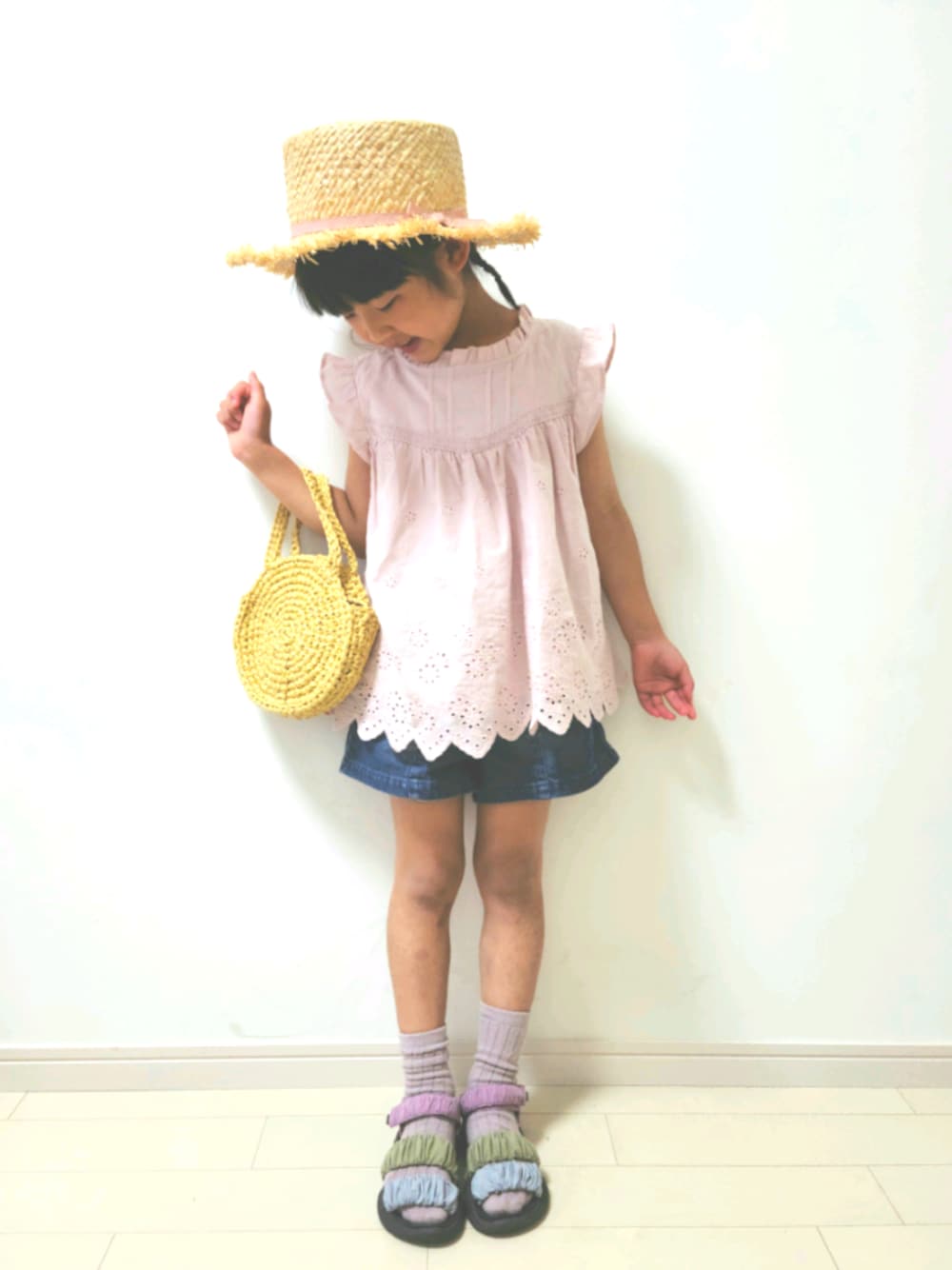くすみカラーサンダルコーデ♥️ 今年のサンダルはコレに決めました!! おZARA様のくすみカラーサンダル♥️ 色味に一目惚れして買ったけど ももちゃんに履かせてみたら 「痛くないよ~」とお気に入りの様子😊 お洋服は上下バースデイ🎂 もぅ最近ほとんどバースデイ💦(笑) トップスはフリルとスカラップレース感がかわいい♥️ デニムショーパンはハイウエストで デザインも凝っててかわいいのに なかなかインにして着る機会がない😅 小窓にはGWの思い出。。 5日間のお休み中唯一の行楽は登山⛰️ 家からスタートして約2時間歩いて 目的地のつつじ園に到着しました! つつじ園でお弁当を食べていたら こども園のお友達に会えて大喜びのももちゃんでした😆