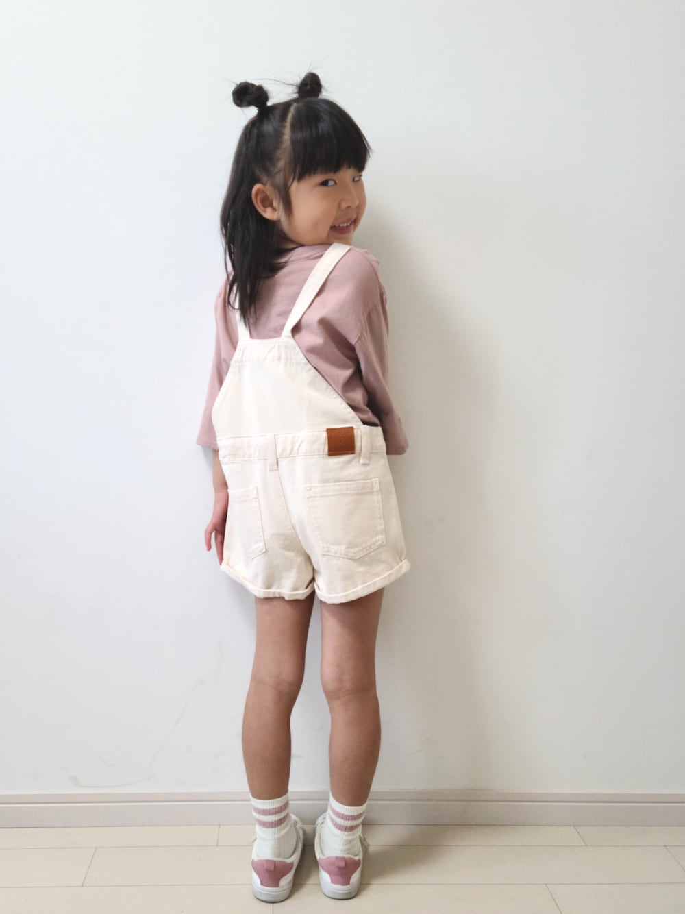 デニムショートサロペットのいちごミルクコーデ♥️ バースデイで見つけたショート丈のデニサロ~ オフホワイトなとことボタンがシャンパンピンクなとこが かわいくて一目惚れしましたー😍 小窓には娘のヤンチャっぷりを💦(笑) コマなしは自転車2回目の練習で アスファルトも乗れるようになりました✨ キレイにできるようになった側転は 楽しすぎてどこでもやる😅 運動会に向けて練習中の竹馬は今2段目! 最終的に9段になるそうな。。 縄跳び記録……355回 フラフープ記録……3170回 数えるのが大変でしたー😂