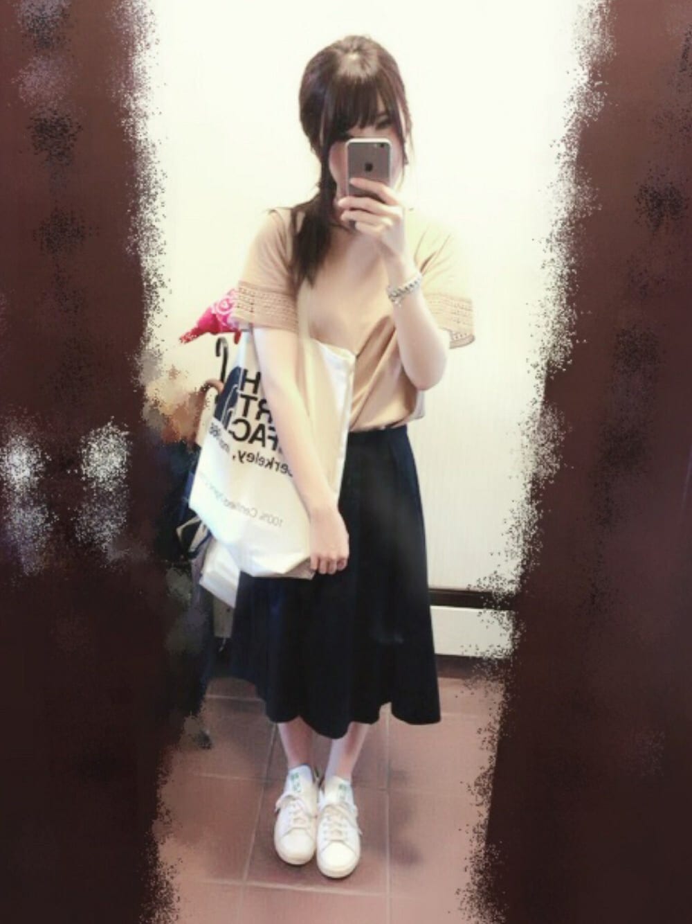 この間セールでゲットしたkhajuのトップス✼ シンプルだけど、袖と背中のデザインがお気に入りです◡̈ 最近ズボンが多かったので、久しぶりにスカートで女の子っぽい‼︎を意識してみました〜♡