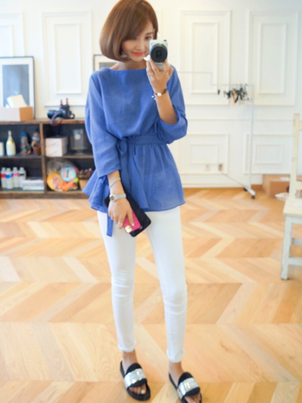 クールトーンあしらいブラウスです。 ボディをウエストリボンがギュッと引き締めて、メリハリ感あるシルエットです。 ゆるいラウンドネックラインは大ぶりなネックレスでポイントを効かせたりしてエッジな演出を楽しめます。 ボトムはミニマルパンツからワイドパンツまでOK。キレイめのコーディネートにGOOD。 ★10,000円以上のお買い上げで送料無料! ★新規会員登録で200円割引クーポンがもらえる! サイトはこちら↓ http://imvely.jp/
