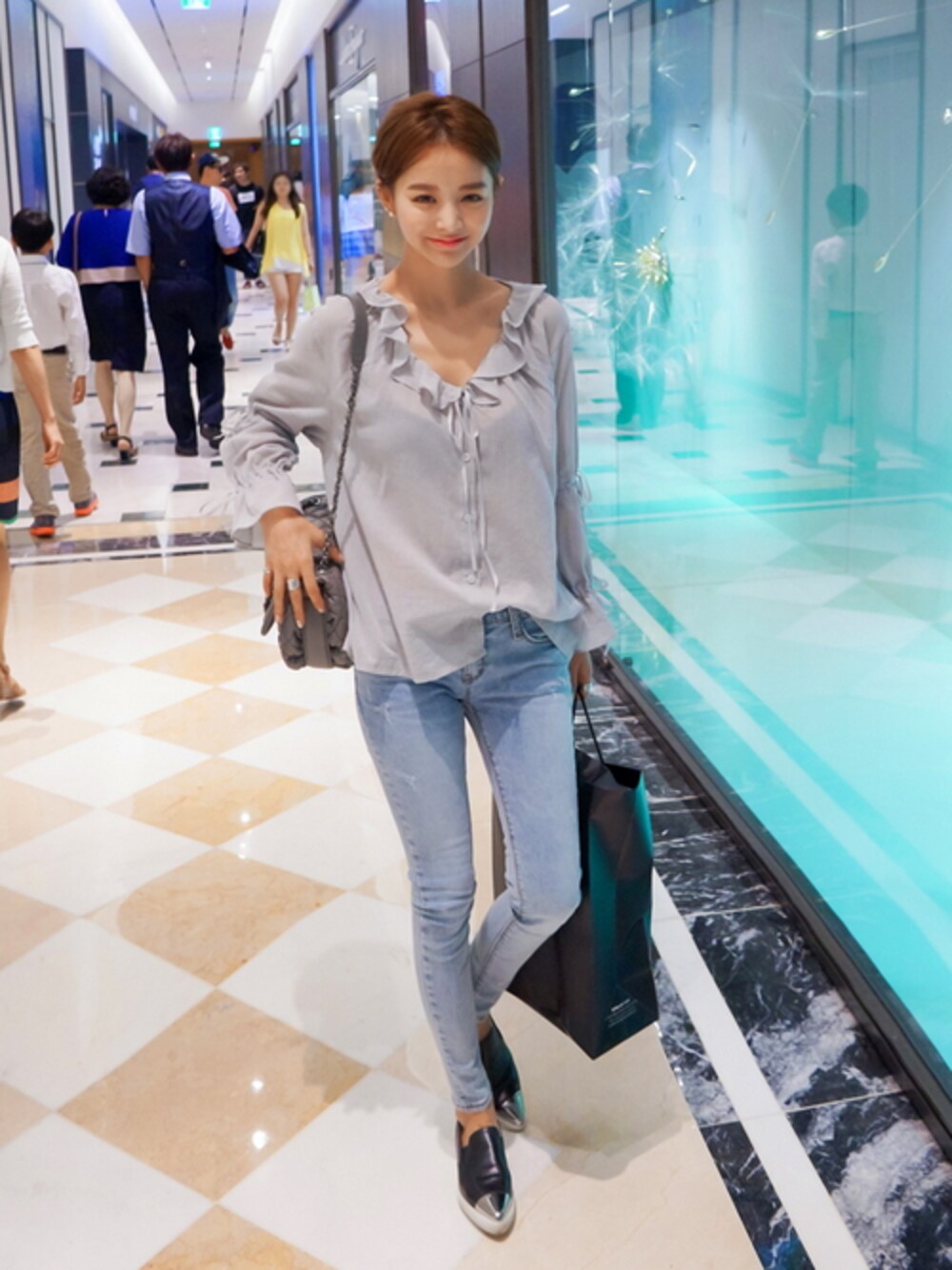 imvelyのシャツ/ブラウス「ラッフルラインコットンブラウス」を使ったコーディネート