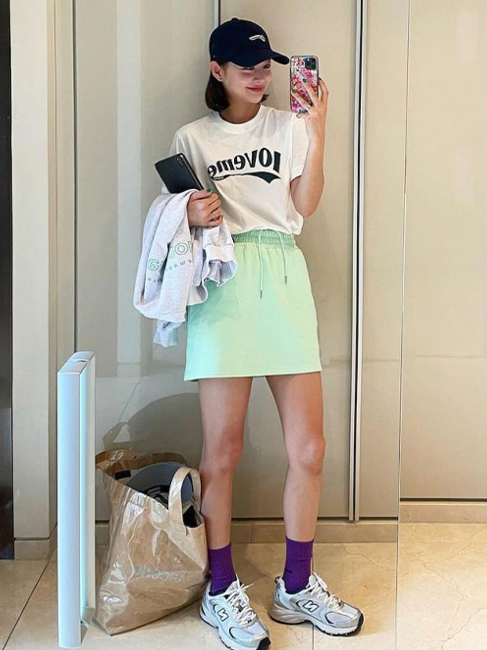 jihyun_imvelyのスカート「[ラブミーモア]トーンオントーンロゴ パンツスカート」を使ったコーディネート