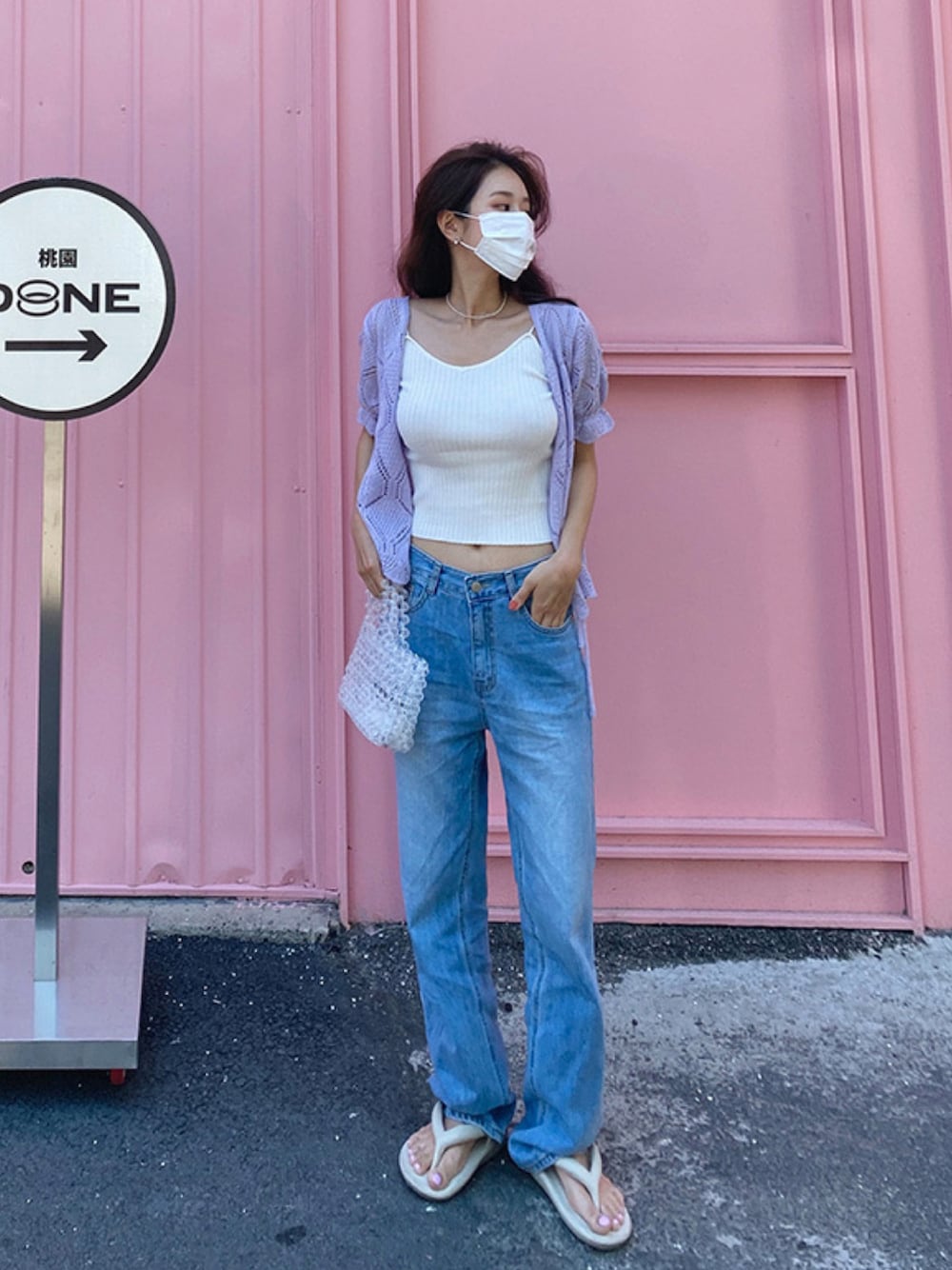 暑いけどファッションを諦められない😫🔥 って時にはかぎ編みのアイテムを着がちです← 半袖で涼しいしカラー感も可愛いし ひし形になってて甘すぎないから カジュアルなコーデの時も大活躍のカーディガン🤩💞