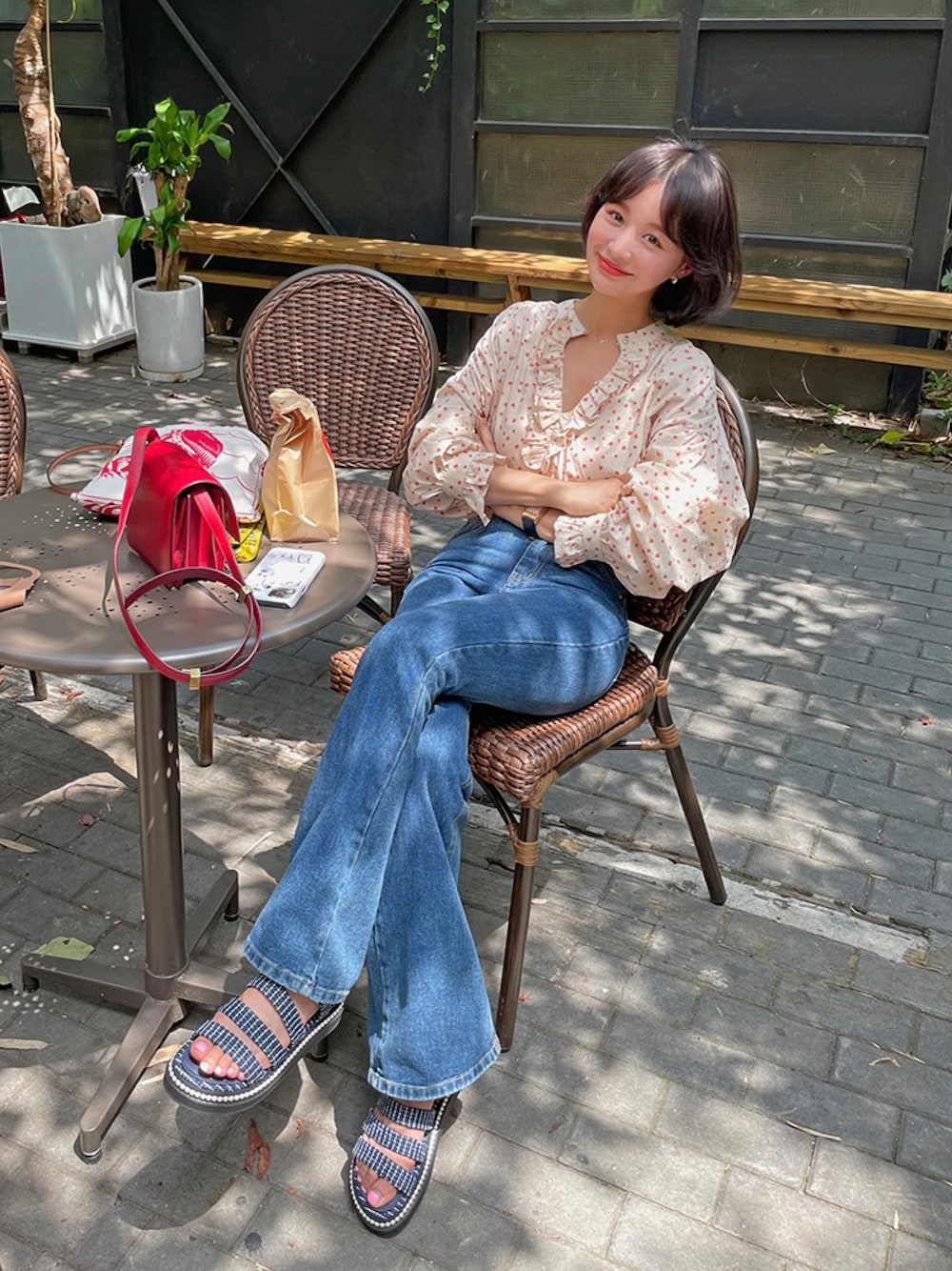 女性らしさがいっぱい詰まったフリルに、 エレガントなシルエットを 作り上げてくれるアイテム🥺🎀 今回はデニムとのコーデでメリハリをつけたよ😉❣️ トップスがゆったりしてる分 ボトムスはスッキリさせるのが🙆♀️💫