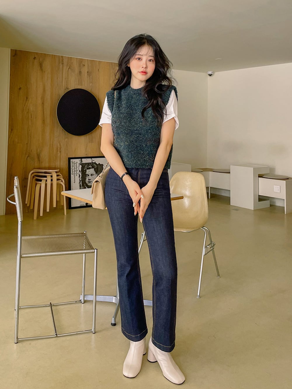 jihyun_imvelyのデニムパンツ「[IMVELY] [THX,V] NO.816 FULL DEEP BOOTS DENIM」を使ったコーディネート