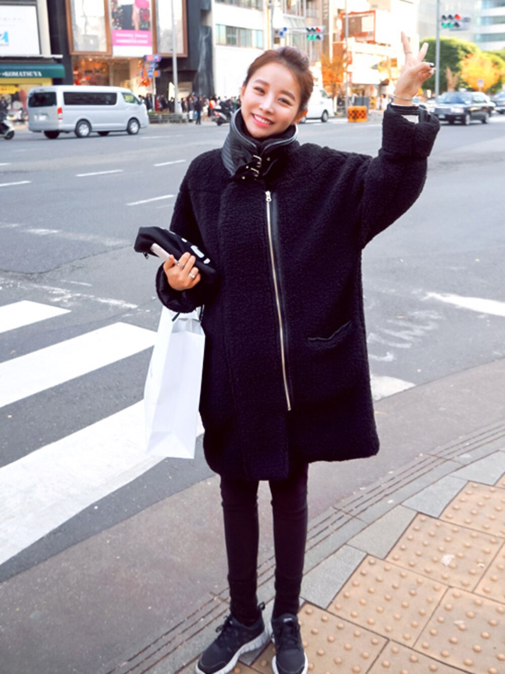 jihyun_imvelyのその他アウター「ワイドネックシャギーボアロングジャケット」を使ったコーディネート
