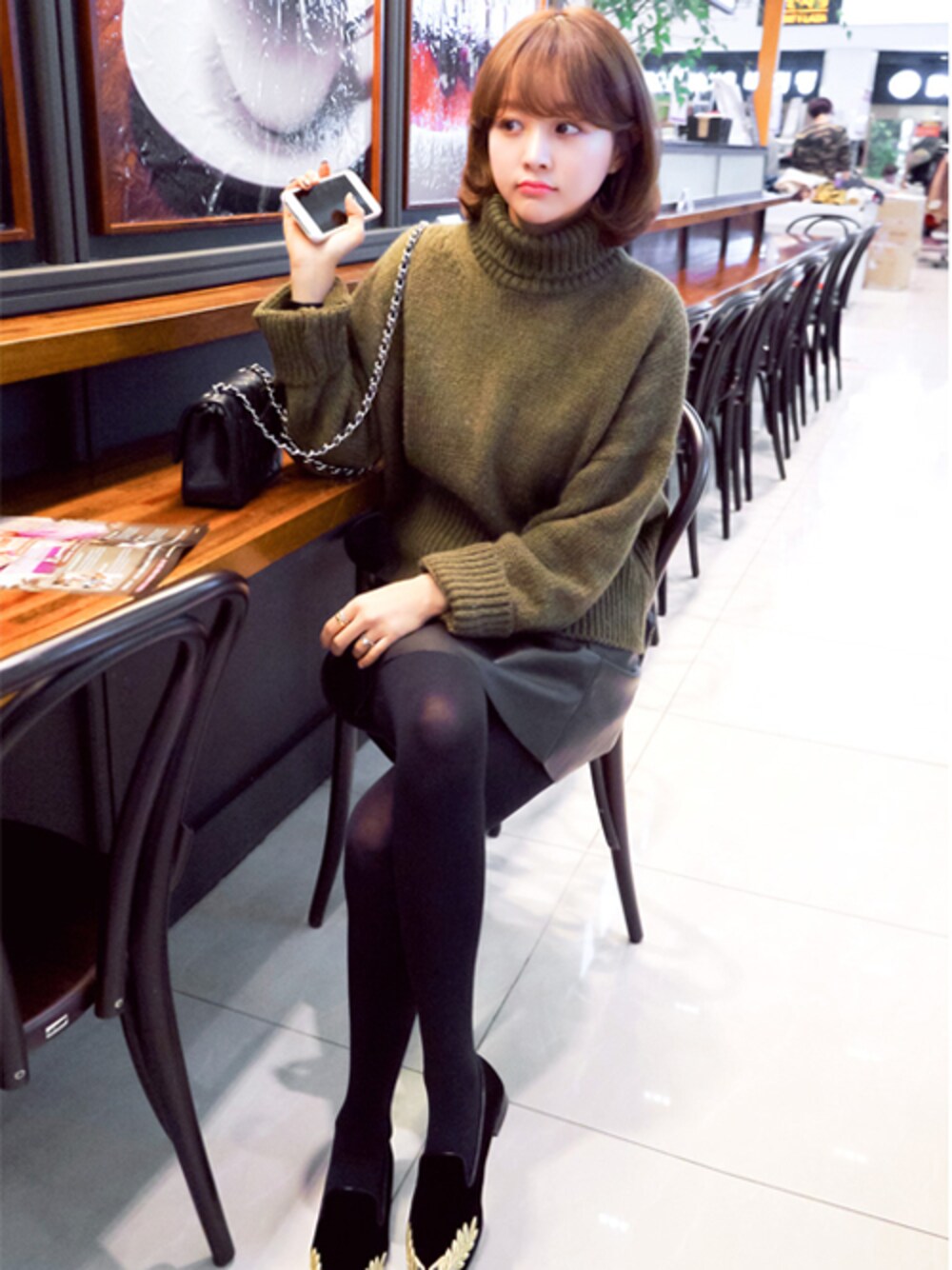 jihyun_imvelyのニット/セーター「クロップ丈ドタートルニット」を使ったコーディネート