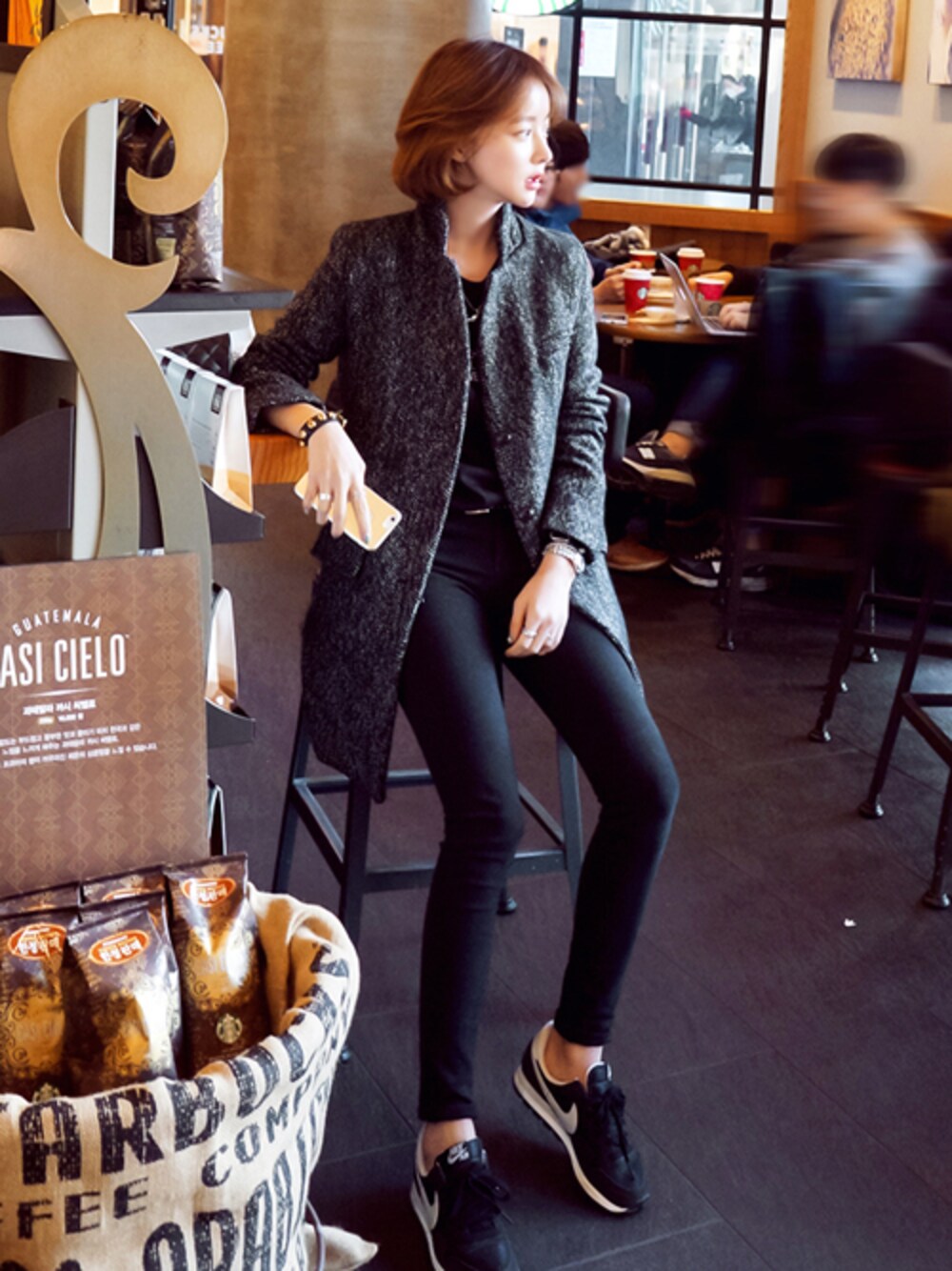 jihyun_imvelyのチェスターコート「エッジカラーヘリンボンコート」を使ったコーディネート