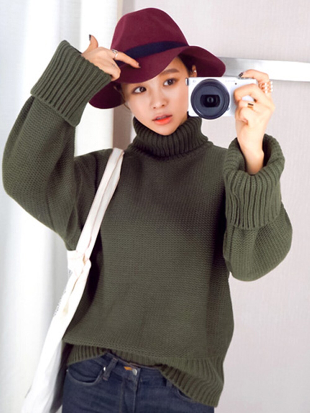 jihyun_imvelyのニット/セーター「クロップ丈ドタートルニット」を使ったコーディネート