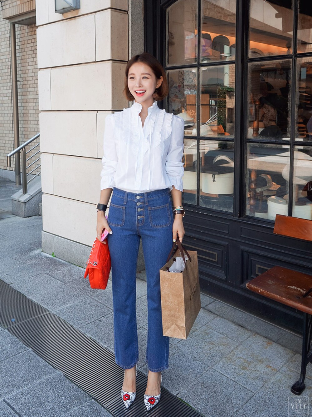 jihyun_imvelyのドレスシューズ「レッドリッププリントパンプス」を使ったコーディネート