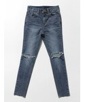 くびつまりボーダーニット + クラッシュロングデニムパンツ