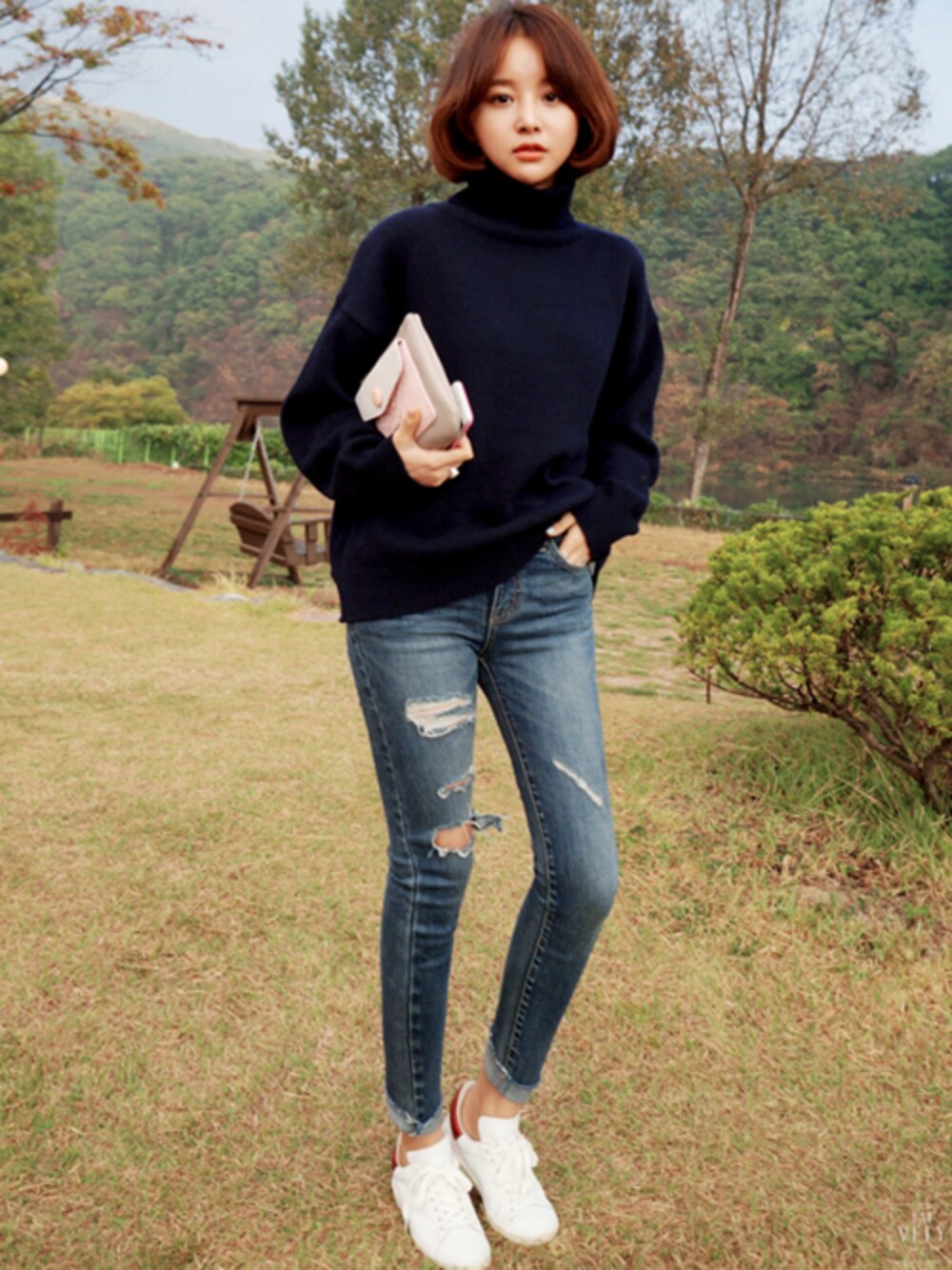 ルーズタートルニット, ヴィンテージ風クラッシュデニム