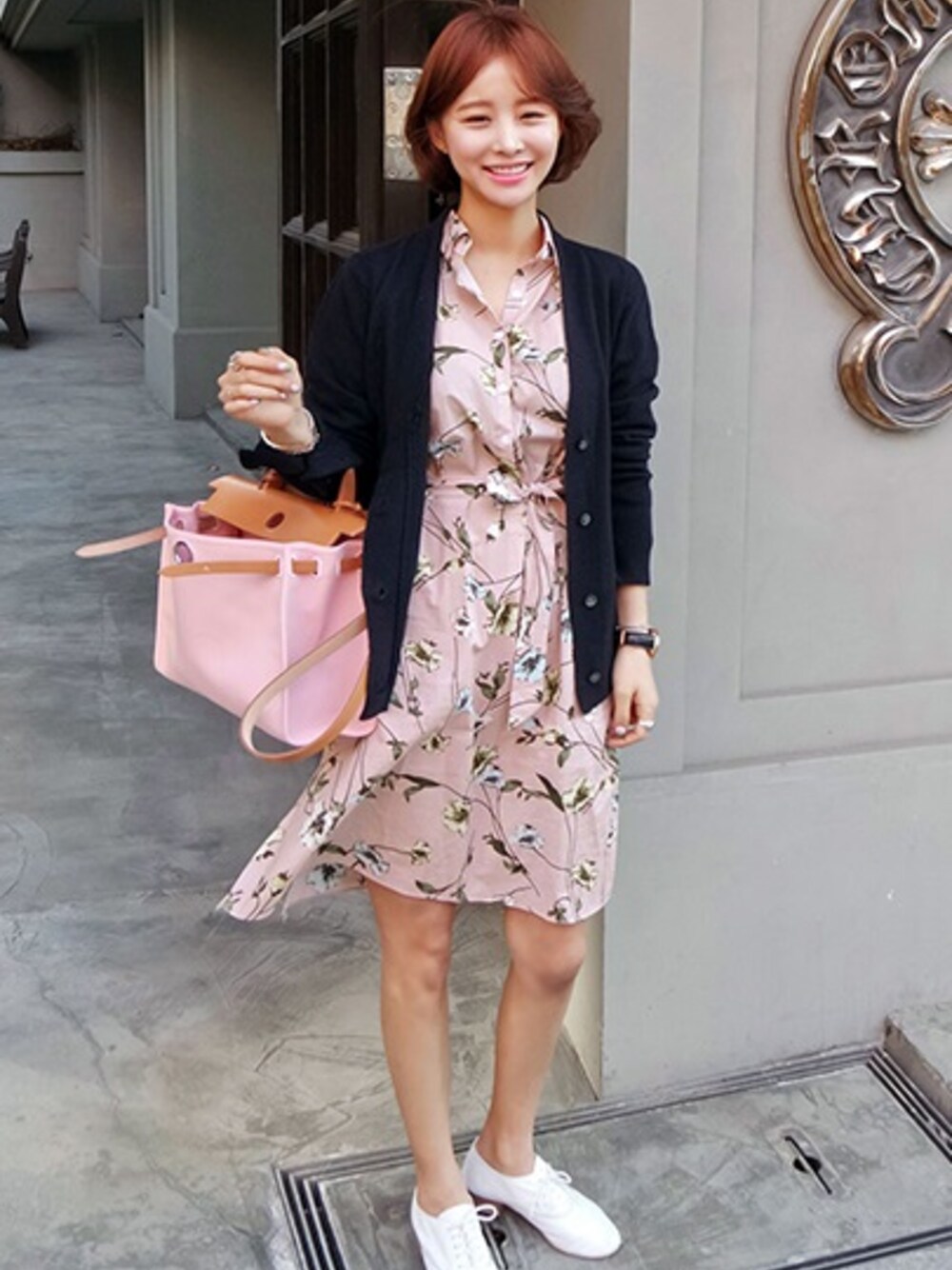 春らしいガ-リーなワンピースコーデを ご紹介いたします♪ ピンクベースの色に春らしい 品のあるフラワー柄がガ-リーに 美しく魅せてくれます。 まだ少し肌寒いので、 上にはカーデガンを羽織りましょう。 袖のボタンがアクセントになっていて とてもおしゃれです♡ 白のフラットシューズを合わせてあげると より明るい印象のコーデが仕上がります。 さらにおしゃれなワンポイントとして アクセサリーは、大きめの黒の原石リングを♪ 春こそガ-リーに美しく 華やかなワンピースコーデをしてみてくださいね!