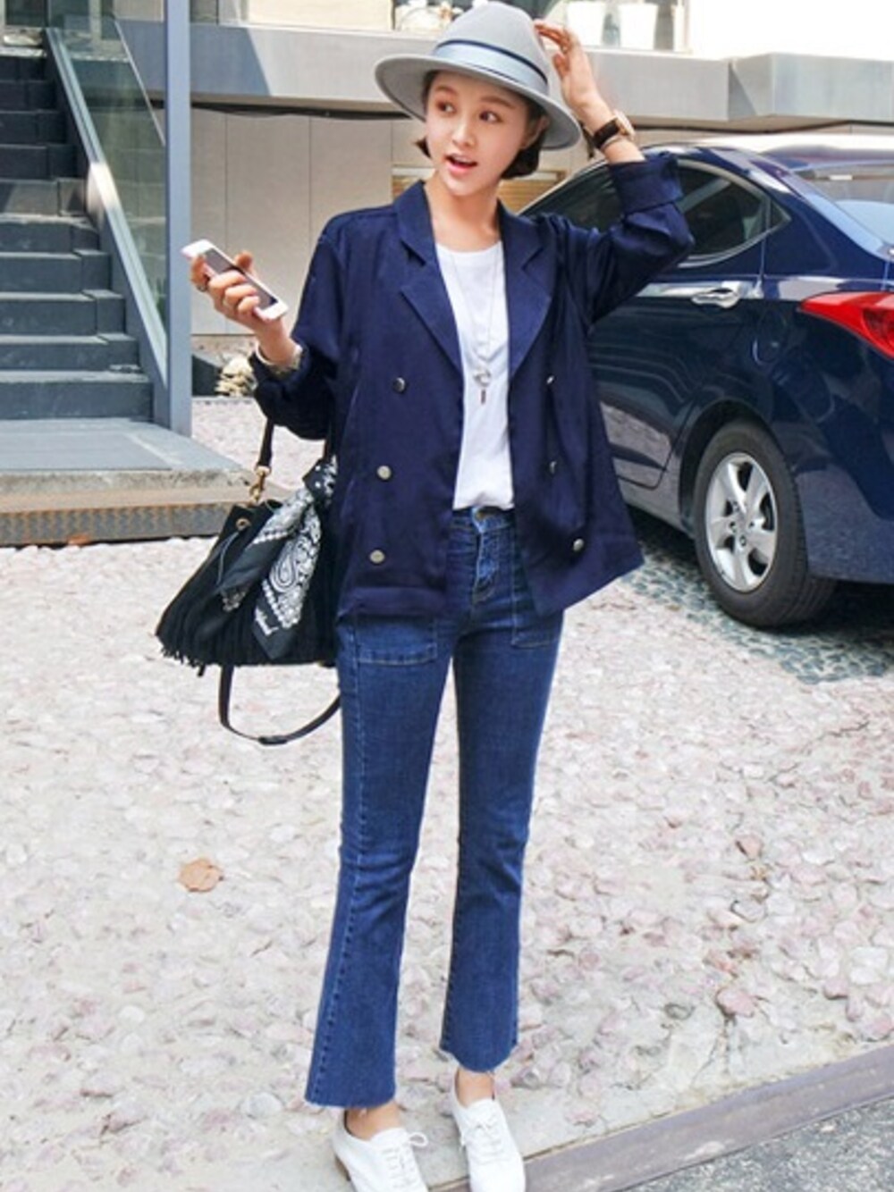 jihyun_imvelyのジャケット&デニムパンツを使った シンプルな春コーデをご紹介いたします♪ 最近は爽やかな気候でだいぶ春らしくなってきましたね~ クラシックな雰囲気で肌触りのよい リボンの配色がオシャレなハットに、 ルーズなシルエットがオシャレなUネックのドロップショルダーTと、 全体的にシャープな印象のテーラードジャケットで、 シンプルかつ大人っぽさを演出できます♪ フロントの大きなポケットがポイントのデニムで合わせて、 春のデニムスタイルを楽しみましょう~♪ ぜひ試してみてください♪