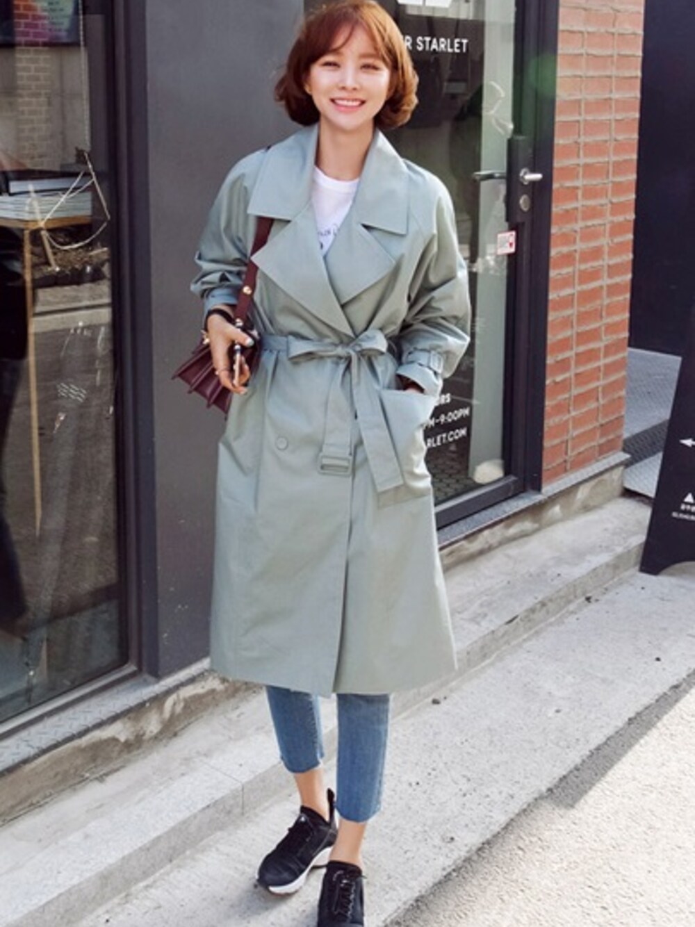 jihyun_imvelyのトレンチコート「春気分トレンチ(ディープミント)」を使ったコーディネート