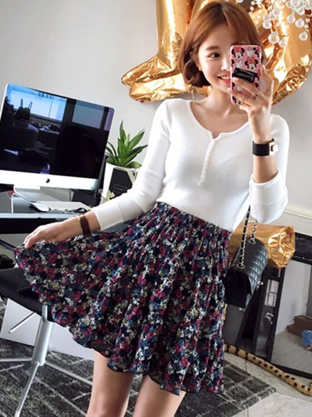 春のお花見にもおすすめな フラワーコーデをご紹介いたします♪ 白のリブニットはタイトなデザインで 女性らしさを引き出してくれます☆ スカートはフリルの効いたフラワー柄で リブニットをインすることによって スタイルの良さを演出できるので 華奢でガ-リーな着こなしができます。 お花見やデートなど これからの時期のコーデとしてぴったりです!!