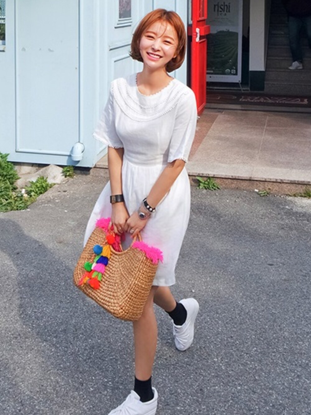 jihyun_imvelyのワンピース「ポンポンレース付ワンピース」を使ったコーディネート