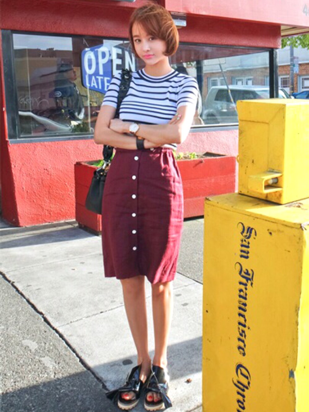 jihyun_imvelyのスカート「ボタンフライタイトスカート」を使ったコーディネート