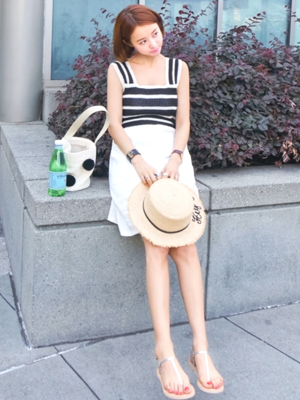 おはようございます♡ 天気がいいですね~ 少しづつ夏に近づいています♪ 夏に向けて1枚着できるワンピースは これからの季節に必須です^^ ボーダーの切り替えタイプになっていて ウエスト部分からはホワイトの ミドル丈スカートになっています☆ ウエスト部分の後ろにはリボンがついており とても可愛いんです♡ カゴバッグやカンカン帽とも 良く合うコーデです。