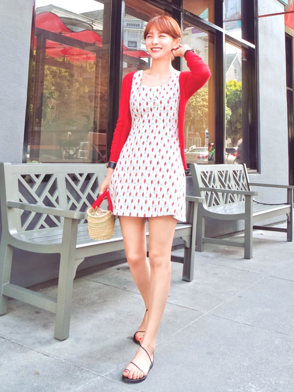 jihyun_imvelyのワンピース「レッドスクエアプリントワンピース」を使ったコーディネート