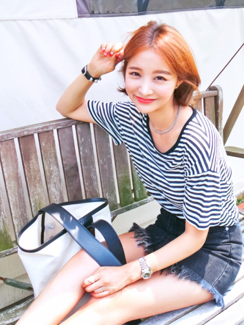 jihyun_imvelyのTシャツ/カットソー「カジュアルブラックボーダーT」を使ったコーディネート
