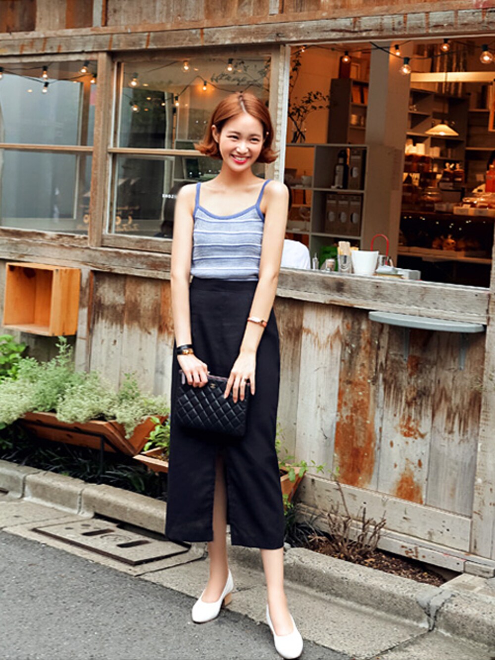 jihyun_imvelyのキャミソール「サマーニットボーダーキャミソール」を使ったコーディネート