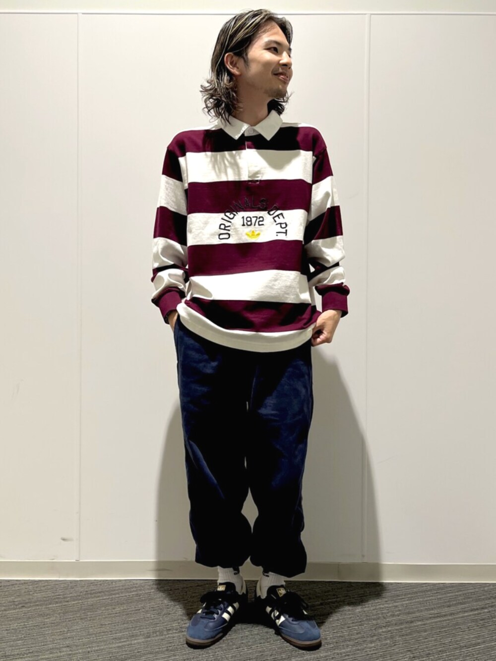 Nari(アディダス オリジナルスショップ ららぽーと富士見)のポロシャツ「アディダス オリジナルス デプト ストライプポロシャツ / アディダスオリジナルス adidas Originals」を使ったコーディネート